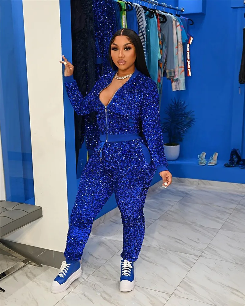 24-7ops.com 【日本産】 女性用スパンコール付きベルベットスーツ,長袖ジャケットとパンツ,クラブウェアと一緒に着用するツーピーススーツ,6409 新しい到着